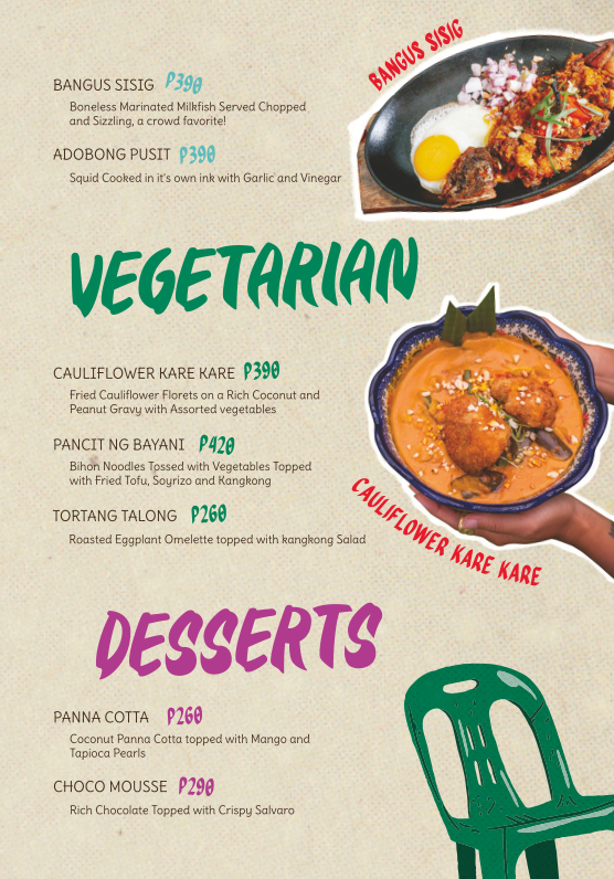 For appetizers, the iconic Lumpiang Shanghai and Kinilaw showcase the restaurant's focus on fresh ingredients. Signature seafood dishes like Adobong Pusit and Bangus Sisig tantalize the palate, making each meal a culinary adventure. The attentive staff ensures a friendly and vibrant dining experience that keeps guests returning for more.